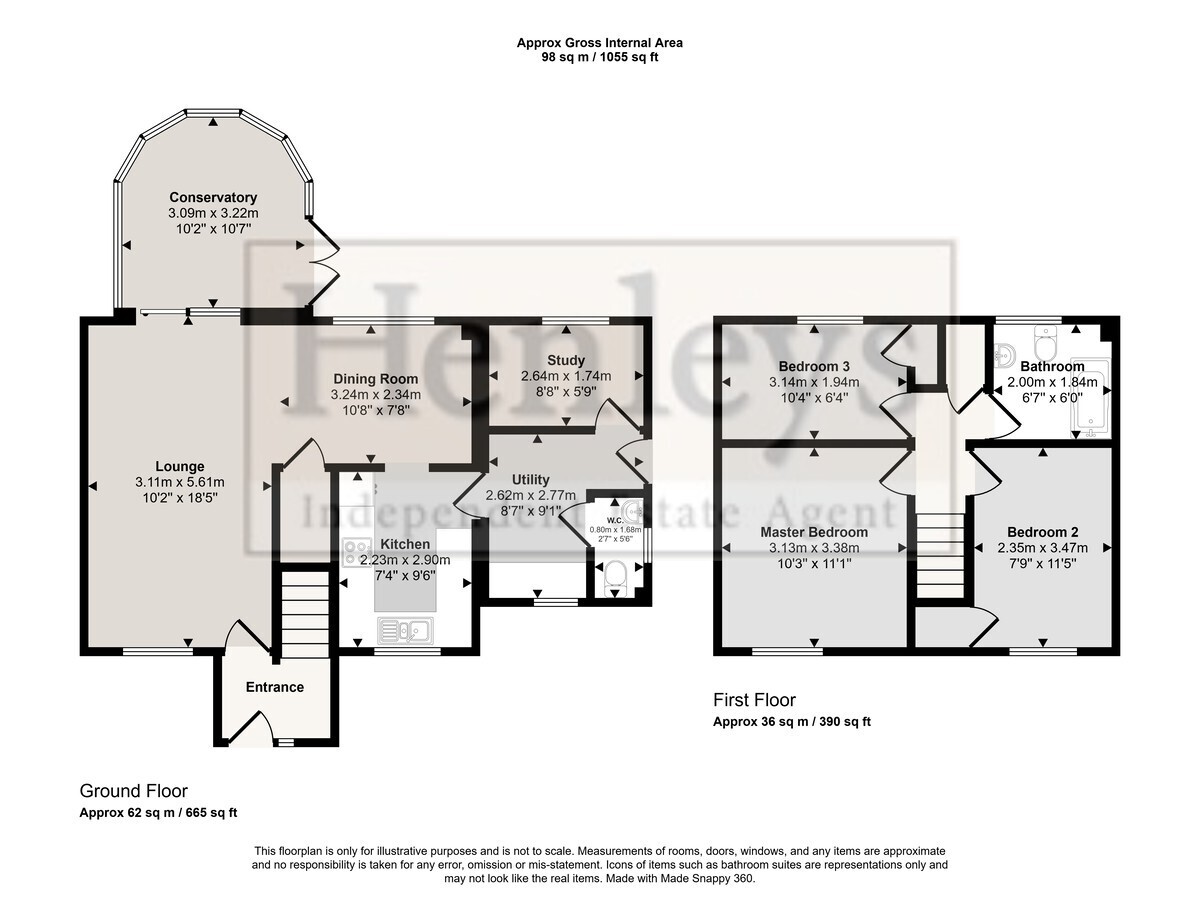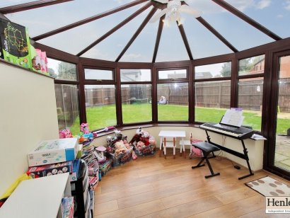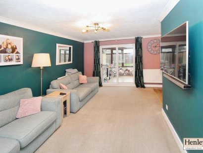 LIVING ROOM Carpet flooring, window to front, patio doors to conservatory.