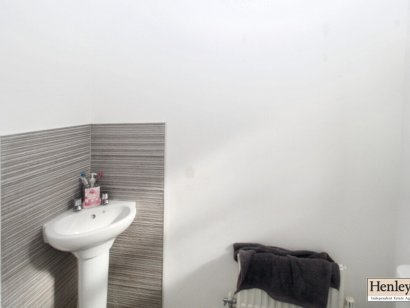 CLOAKROOM Tiled flooring, toilet, sink, tiled splash back, window to front.