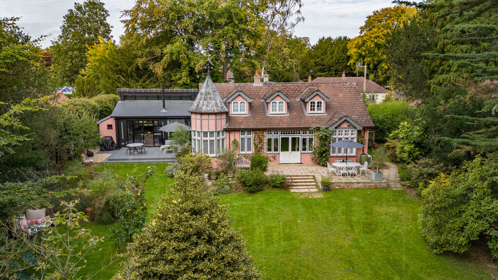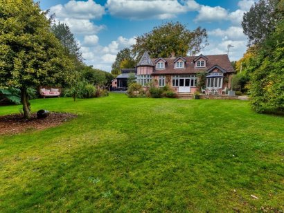 Turret Lodge is a striking Architectural property built in the American Colonial Style. The property enjoys a sought after position within The Park at Great Barton, set within approximately half an acre of grounds with beautiful mature gardens and patio areas ideal for Alfresco Dining. This individual property offers features such as a Characterful Turret overlooking the garden, a contemporary style kitchen featuring French Doors to one of the patio areas, a floating log burner, under floor heating, air conditioning, 5 bedrooms, master with dressing room and ensuite.