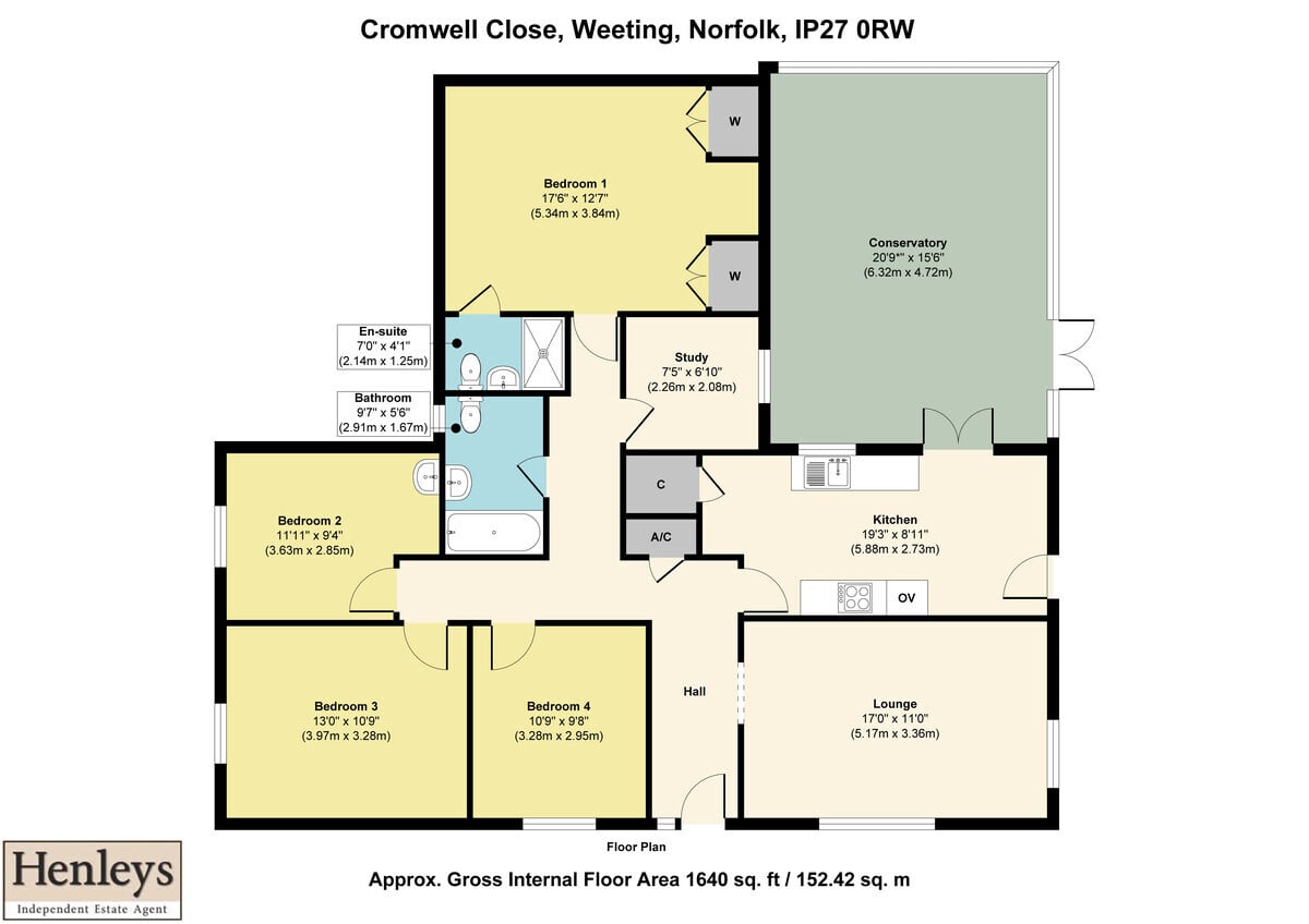 CONSERVATORY Laminate flooring, air conditioning, ceiling fan, fireplace, french doors to garden.