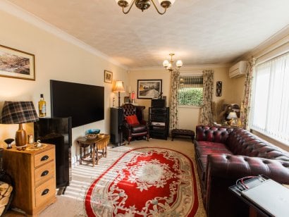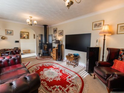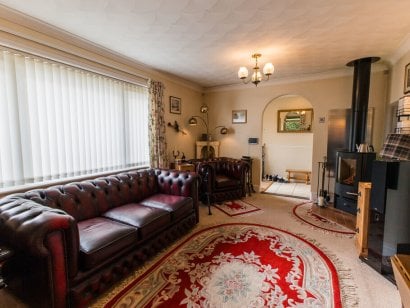 LIVING ROOM Carpet flooring, air conditioning, wood burner, windows to front and side.