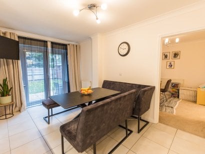 Large dual-aspect Lounge (12'3" × 12'2") filled with natural light from double doors to the rear garden.